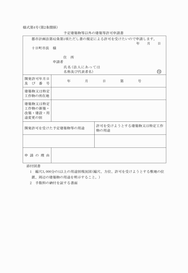 (4) 法第42条第1項ただし書の規定による許可 様式第4号