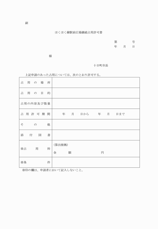 第7条 占用の許可を受けた者は、占用を廃止しようとするときは、占用廃止届書(様式第5号)により市長に届け出なければならない。