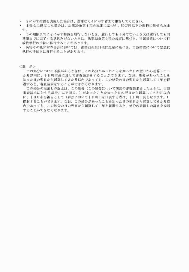 (1) 行政代執行法(昭和23年法律第43号)第3条第1項に規定する文書 戒告書(様式第18号)