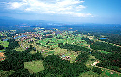 河岸段丘の最上階に広がる高原リゾート。美しい緑のじゅうたんに、ホテルやコテージ、ゴルフ場、森などが点在する。
