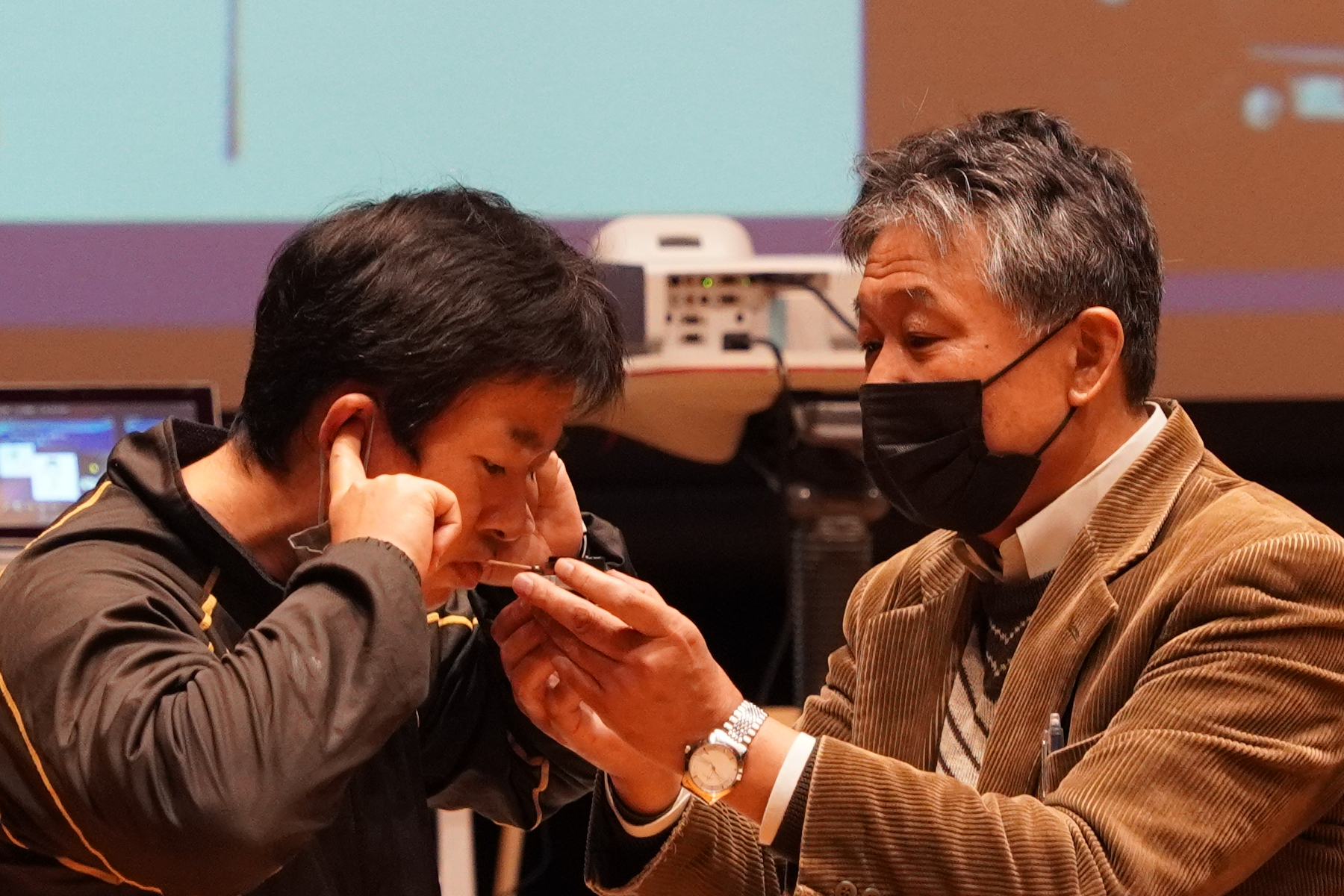 ふだん音は空気中を伝わって耳に入ることで聞くことが出来ますが、耳をふさいでいても骨を通して音を聞くことが出来ます。
